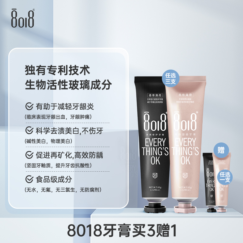 【3支+赠1支】8018 经典款牙膏 | 黑色牙周修复 金色亮白固齿 牙膏